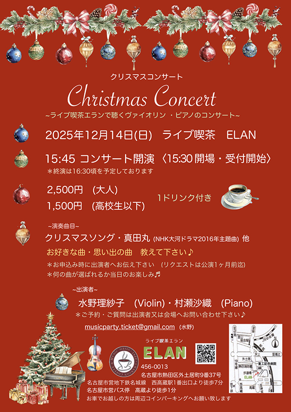 ~ライブ喫茶エランで聴くヴァイオリン・ピアノのコンサート~